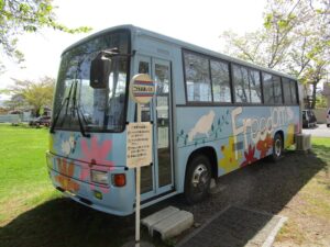5月2日(土)下諏訪町立図書館前の「こども未来バス」の前で、のりものおはなし会を開催します。